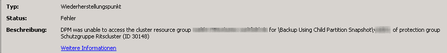 Ohne die Installation weiterer Software sind wir nun in der Lage, Backups der VMs zu erstellen. Diese Backups werden allerdings vom DPM mit einer oder mehreren Fehlermeldungen begleitet