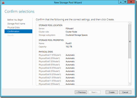 Damit Ihre Daten bei dem Betrieb von drei oder mehr JBODs vor einem Ausfall geschützt sind, müssen Sie eine Enclosure Awareness aktivieren. Dies bedeutet bei der Ablage von Daten auf Ihren Festplatten wird darauf geachtet, das die gespiegelten Daten nicht im gleichen JBOD gespeichert werden. Diese Funktion kann entweder für einen kompletten Storage Pool konfiguriert werden oder Sie setzen diese Eigenschaft bei der Erstellung Ihrer virtuellen Datenträger. Da diese Funktion nur per PowerShell aktiviert werden kann empfiehlt sich eine Erstellung von Datenträgern per PowerShell. Im späteren Verlauf des Artikels wird auf diesen Punkt erneut eingegangen. (TechNet Wiki: Enclosure Awareness Support – Tolerating an Entire Enclosure Failing)