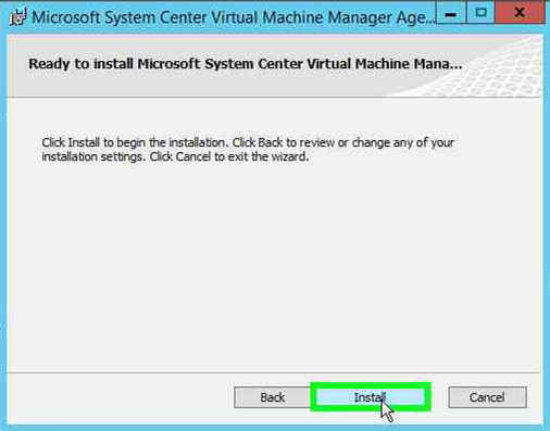 Klicken Sie wieder auf Next. - Damit sind alle notwendigen Informationen für die Installation des VMM Agents erfasst. Durch einen Klick auf die Schaltfläche Install können Sie nun die Installation starten.
