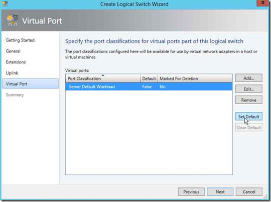 Mit Port Profiles können Funktionen von virtuellen Netzwerkadaptern festgelegt werden, wie z.B. Sicherheitseinstellungen (“Security Settings”) oder Einstellungen zum Auslagern von Netzwerkdatenverkehr-Funktionen (“Offload Settings”) aus dem Betriebssystem in den jeweiligen Netzwerkadapter (sofern von der zugrunde liegenden Hardware unterstützt). Auch eine gewichtete Bandbreitensteuerung kann definiert werden. Details hierzu würden den Rahmen dieses Beitrags sprengen, zumal wir sie für unsere Demoumgebung nicht benötigen. Ich verweise deshalb auf die Microsoft Technet Library (http://technet.microsoft.com/de-de/library/jj721570.aspx (deutsch) bzw. http://technet.microsoft.com/en-us/library/jj721570.aspx (englisch)), wo sie im Einzelnen näher beschrieben werden.